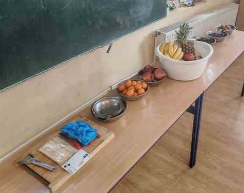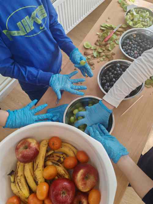 Učenici 3. i 4. razreda produženog boravka, proveli su dan uživajući u voćnim okusima. Samostalno su prali, gulili i rezali raznovrsno voće te slagali svoje voćne ražnjiće. Pritom su igrali razne igre: Voćni bingo, Voćna abeceda, a najviše su uživali u igri Voćna salata koju su igrali na vanjskom dijelu učionice.